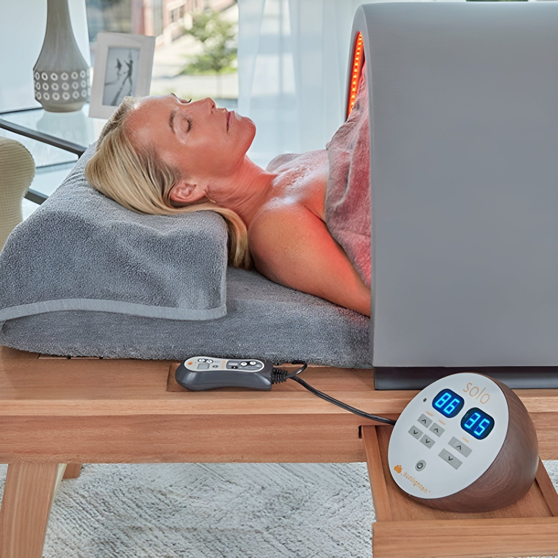 For a healthier, happier you, envelop your entire body with the potent benefits of Sunlighten’s patented SoloCarbon® far infrared heating technology. Experience the natural healing power of infrared right in the comfort of your home.