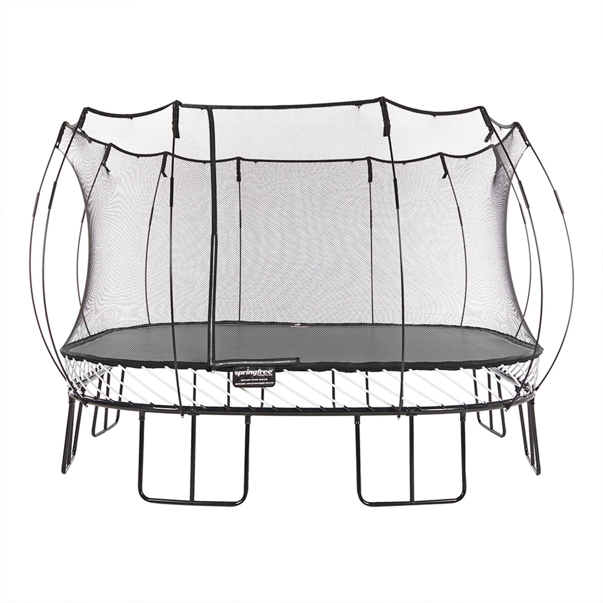 The innovative design of this trampoline ensures safety isn't just an option. The flexible composite rods eliminate the need for metal springs around the outer rim. These redefined rods keep little feet and toes safe from getting pinched or trapped. With the metal spring removal, you'll love how soft the edges gently absorb shock for high bounces that are extra forgiving on knees and joints. Surrounded in an enclosure net, your ambitious jumpers will be safe from falls.