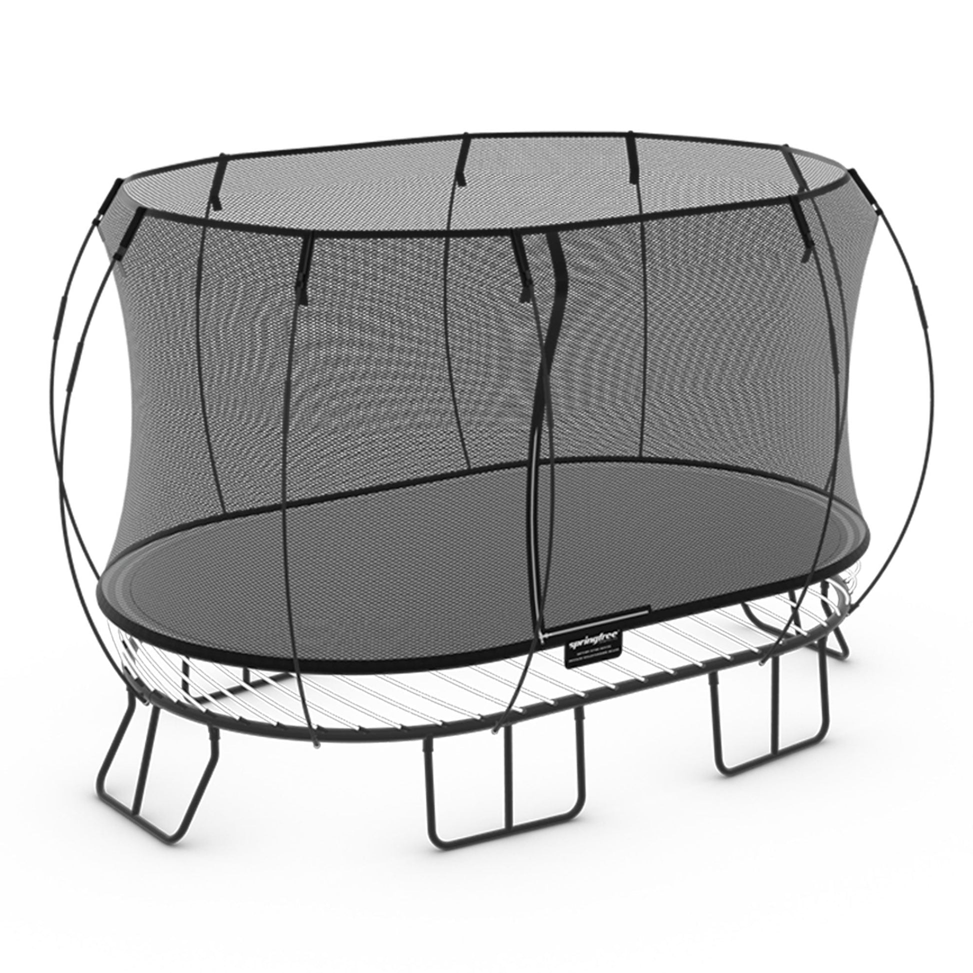 The large oval trampoline is excellent for families and kids of all ages who love being active. This bouncy trampoline provides 92 square feet of jumping freedom for toddlers, kids, and adults weighing less than 220 pounds. The innovative design ensures safety with flexible composite rods that eliminate the need for metal springs, keeping little feet and toes safe. Experience how the soft edges gently absorb shock for high bounces that are extra forgiving on knees and joints. Surrounded by an enclosure net, your ambitious jumpers will be safe from fallsb .