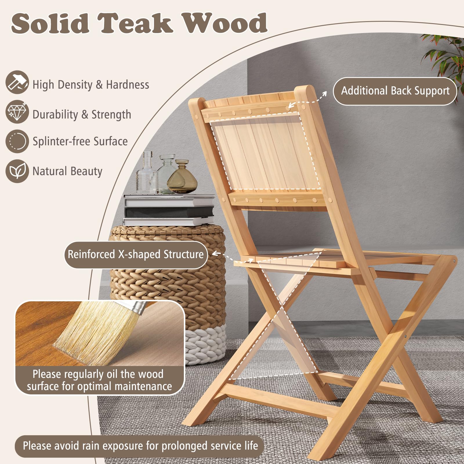 Solid Indonesian teak wood for enhanced density, strength and hardness