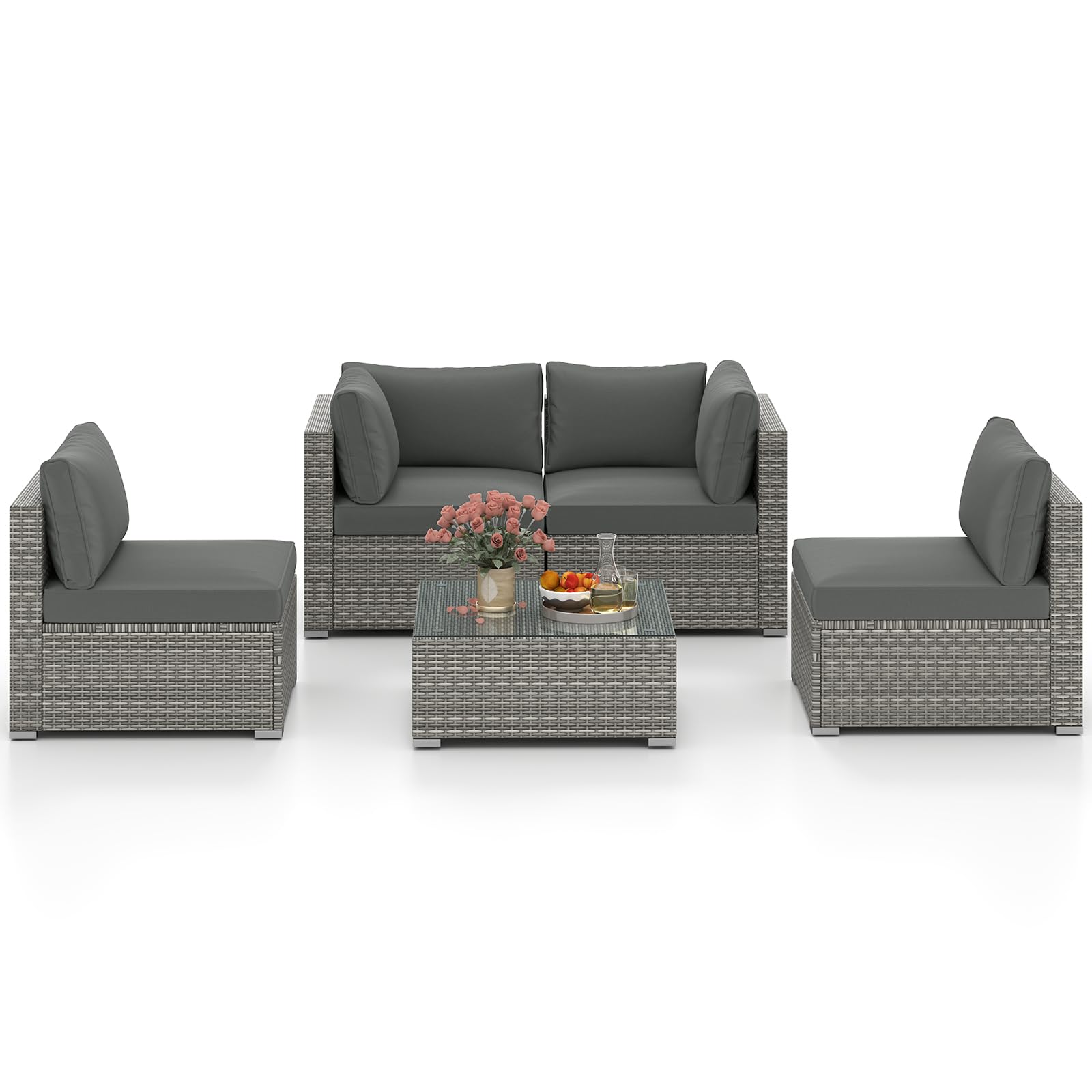 Tangkula 5-Piece Outdoor Patio Sectional Sofa Couch - HW73141GR+