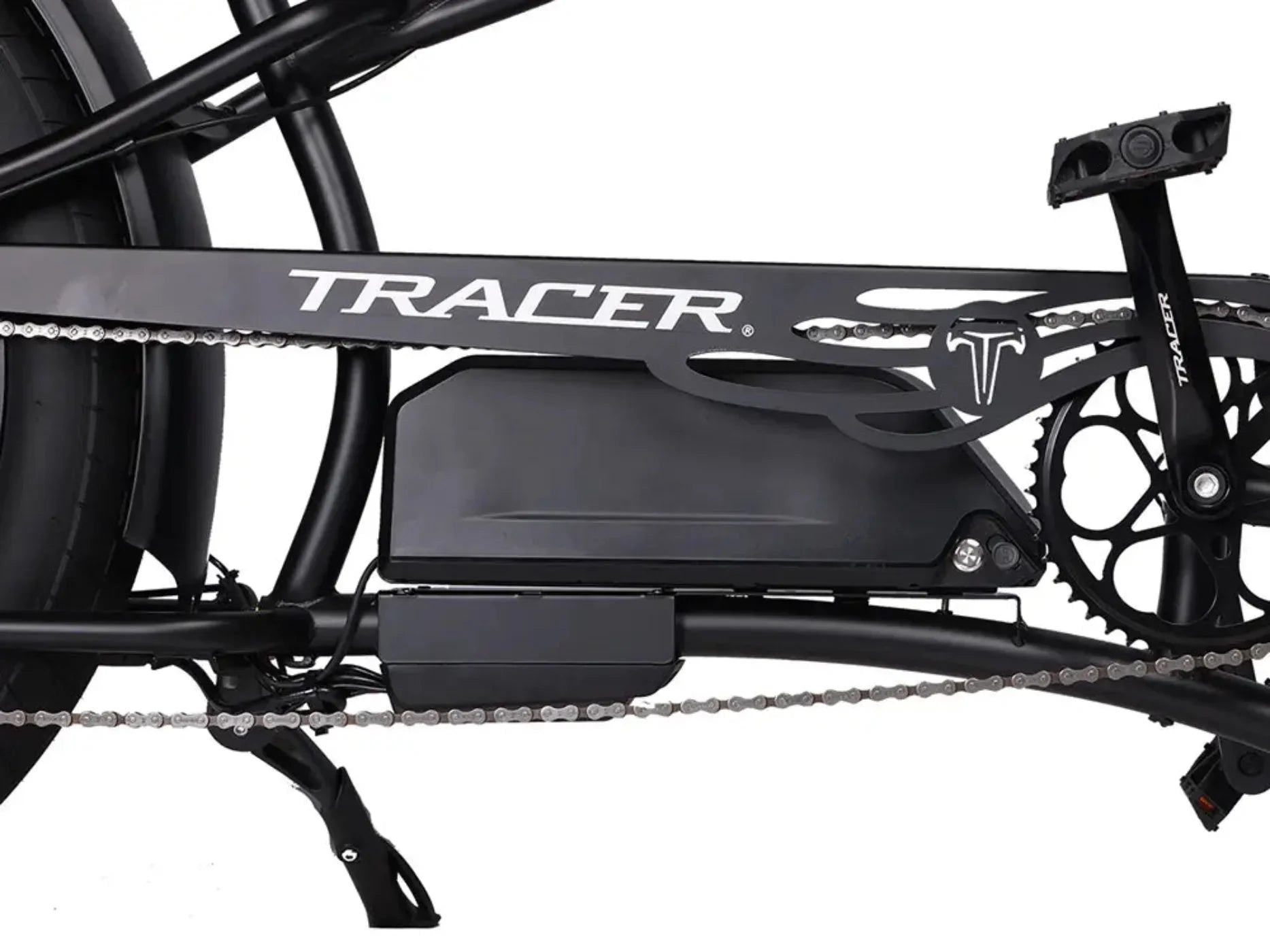 Q: What is the Tracer 750W 48V Chico GT7 Chopper Stretch Cruiser Electric Bike?