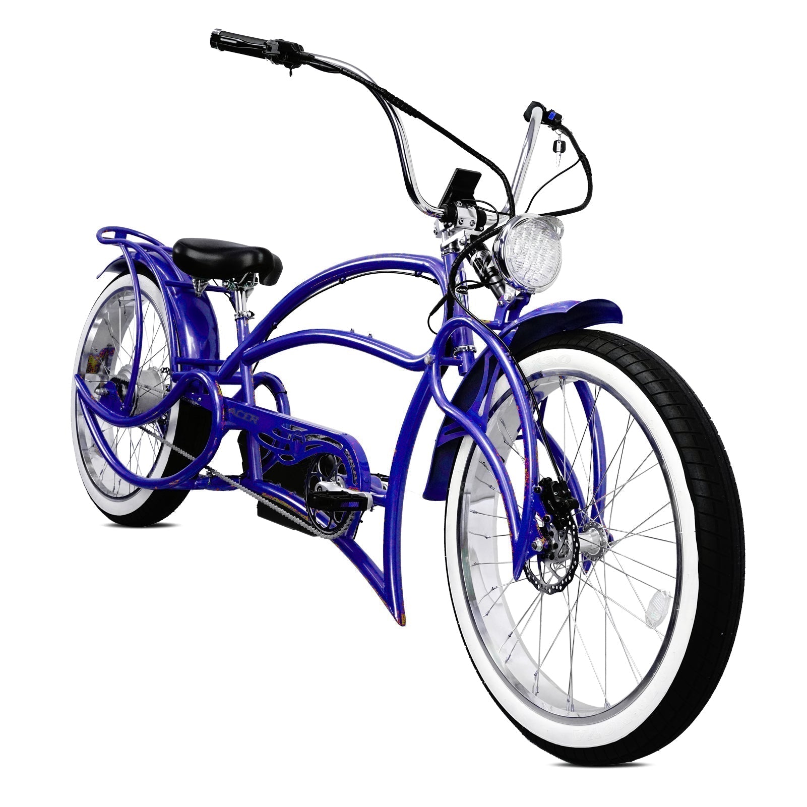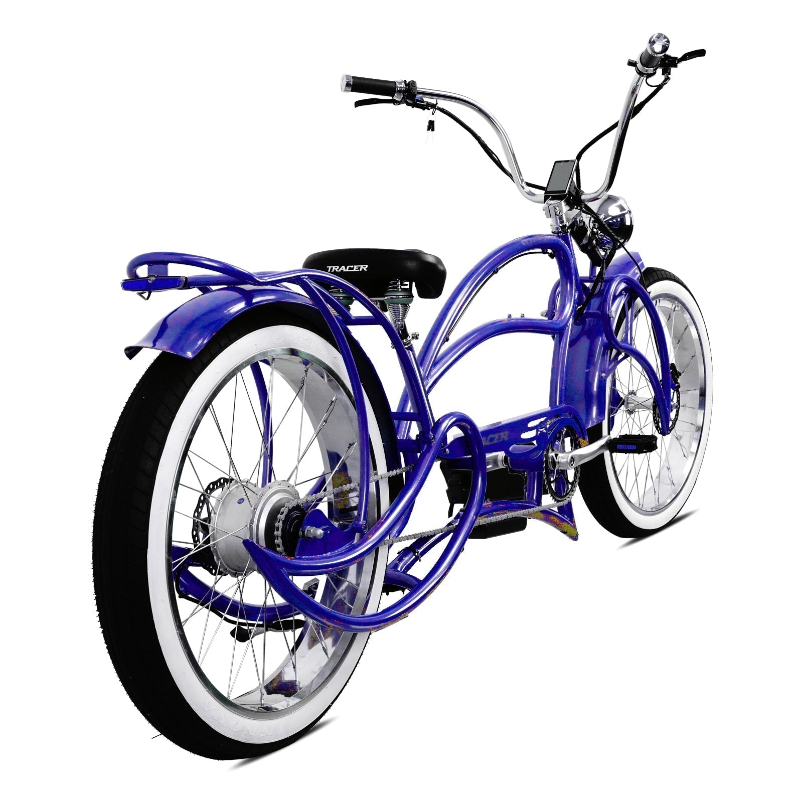 The Tracer Classic Stretch Chopper Hi-Ten Steel Electric Bike is a powerful, stylish, and comfortable electric bike that offers a smooth and efficient riding experience. With its impressive range, speed, and performance, this electric bike is perfect for anyone looking for an eco-friendly and efficient mode of transportation.