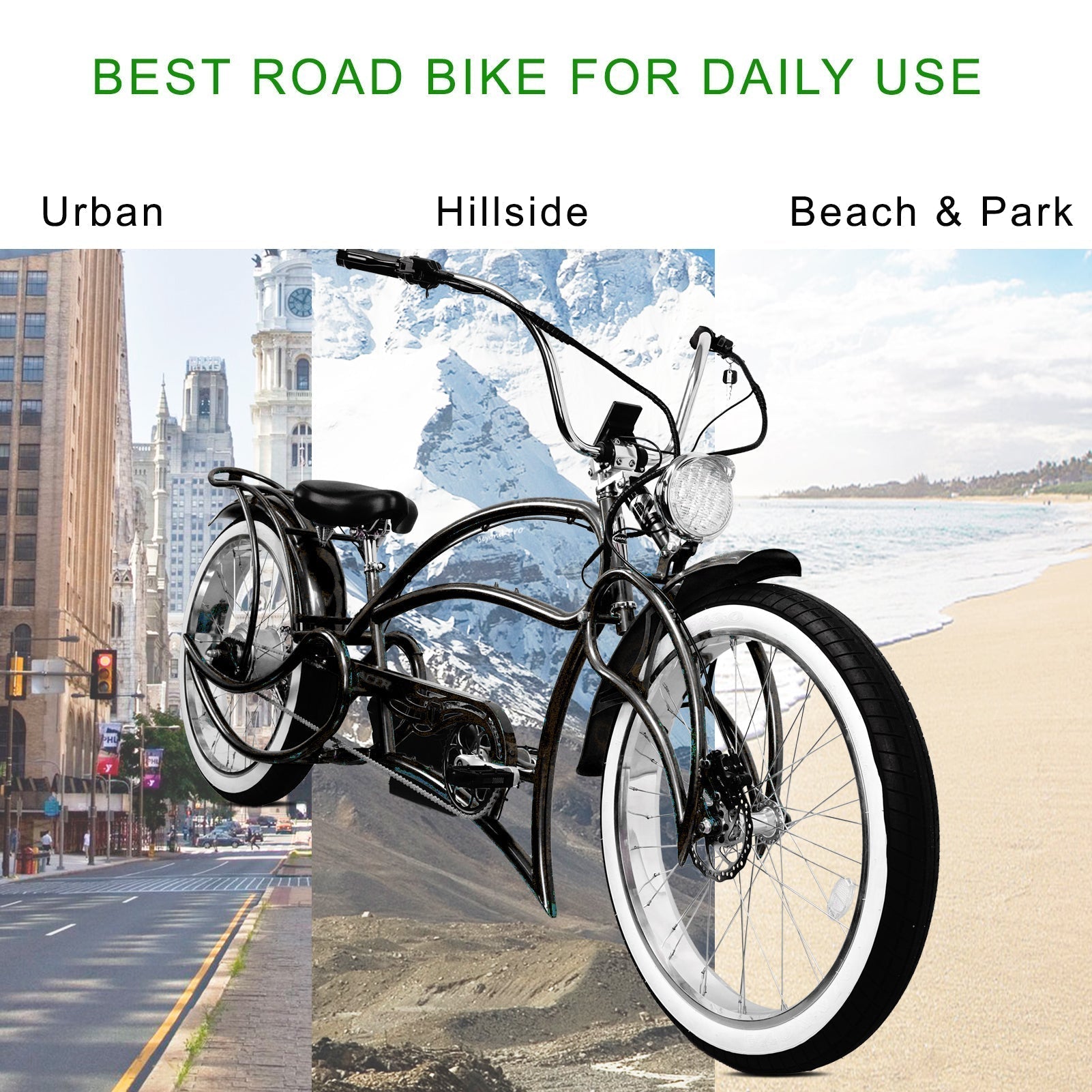 This bike is ideal for adults seeking a stylish and comfortable electric cruiser for commuting, leisurely rides, or beachside cruising.