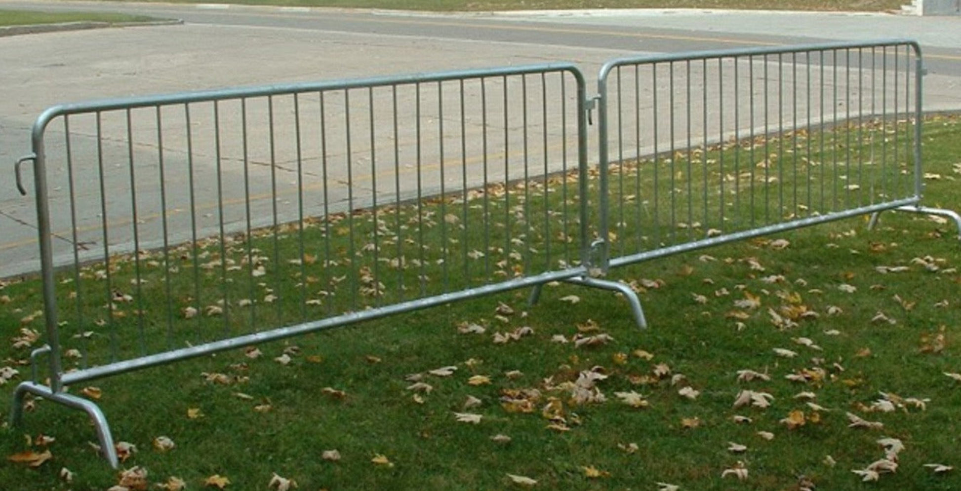 A: Portable fence panel barricades designed for crowd control, sports events, and facility safety, available with bridge or flat-foot bases.
