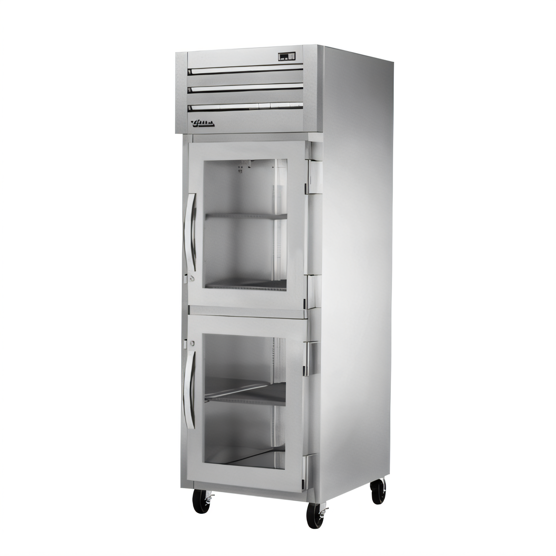 Half-height, crystal-clear glass doors allow easy product visibility while minimizing temperature loss.