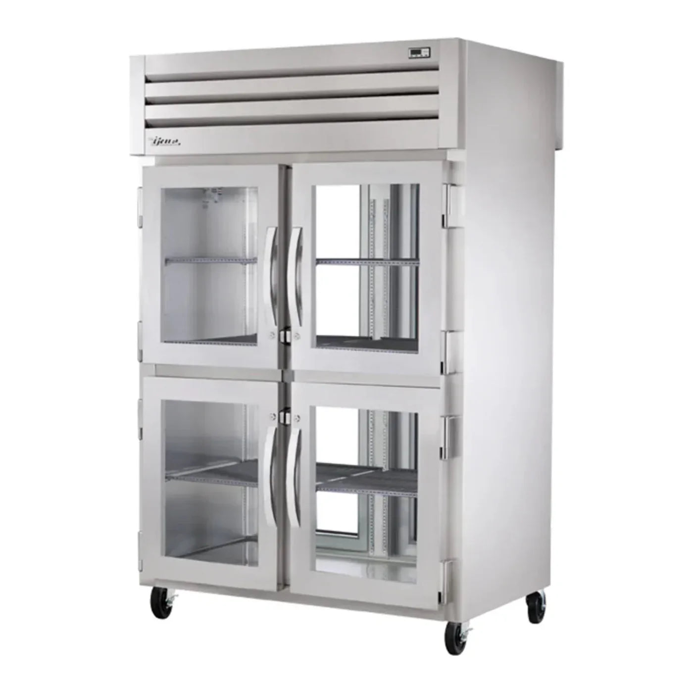 A: The True STR2RPT-4HG-2G-HC is a 52 5/8" Spec Series stainless steel pass-through refrigerator featuring a half-glass front and glass back door for easy access and visibility. It's designed for commercial use, offering high efficiency and durability.