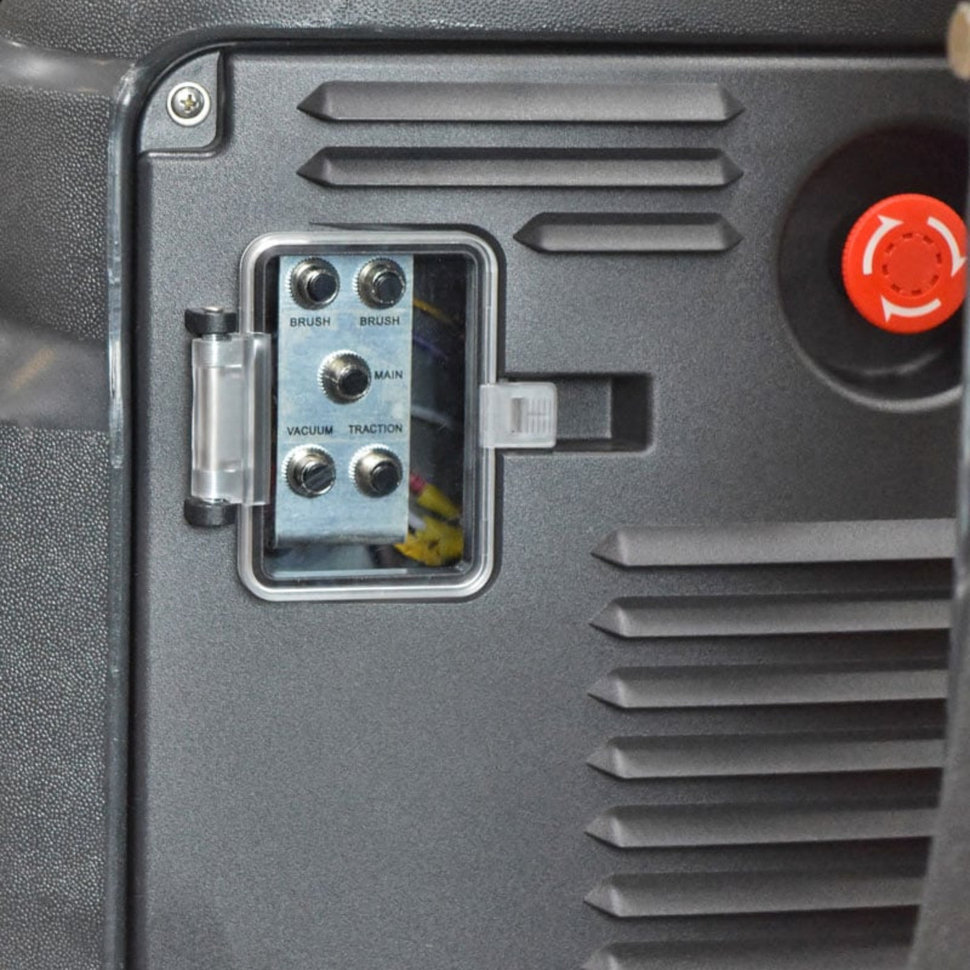 Side pocket for easy storage of paperwork USB port for charging portable electronics Powerful dual brush motors 200RPMs Robust and powerful: Use mechanical way to lift or lower the brush or squeegee. And the optional front bumper protects the machine for longer life-time  |