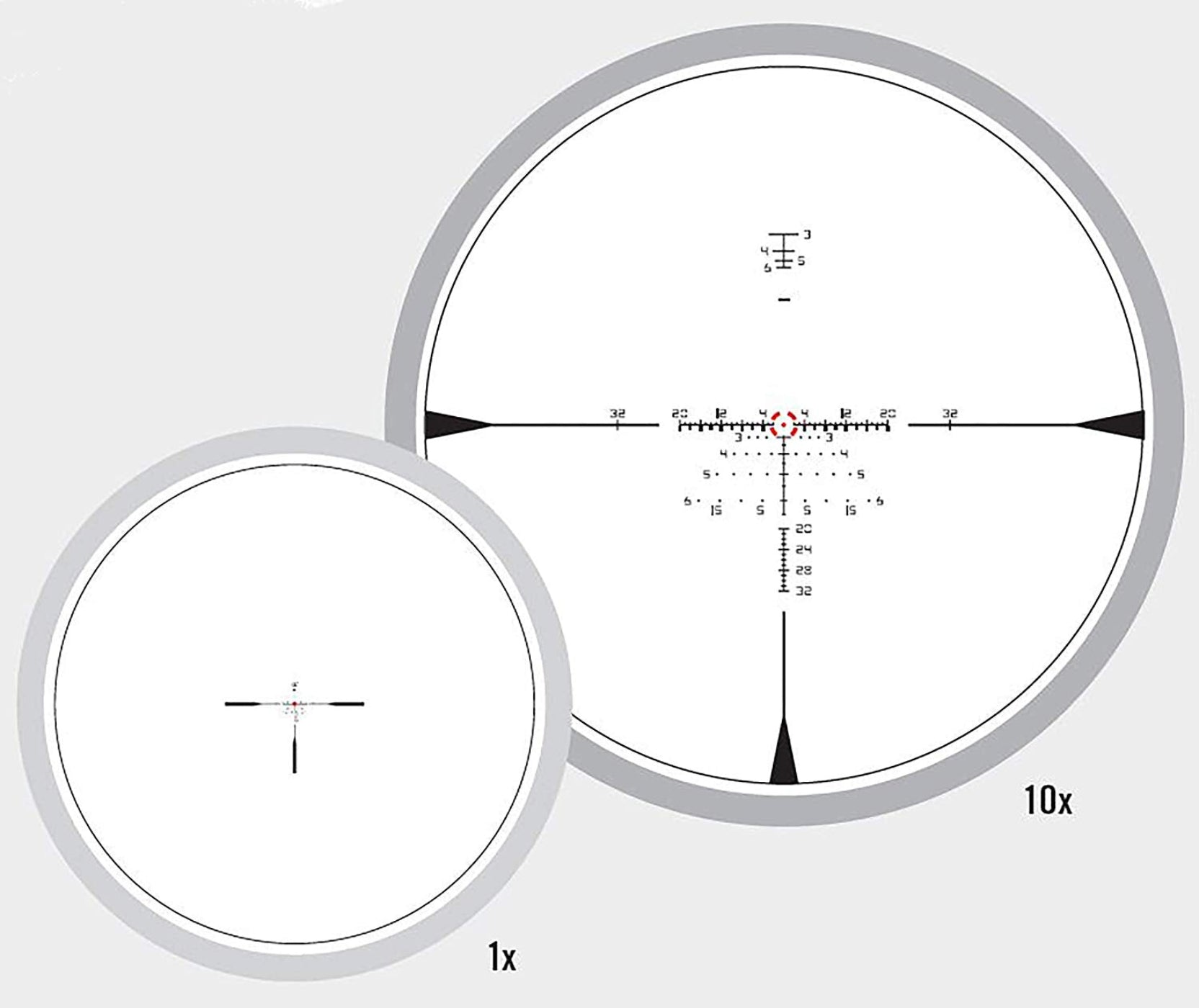 A true 1x optic that functions like a red dot up close, while offering 10x magnification for mid- to long-range shots.