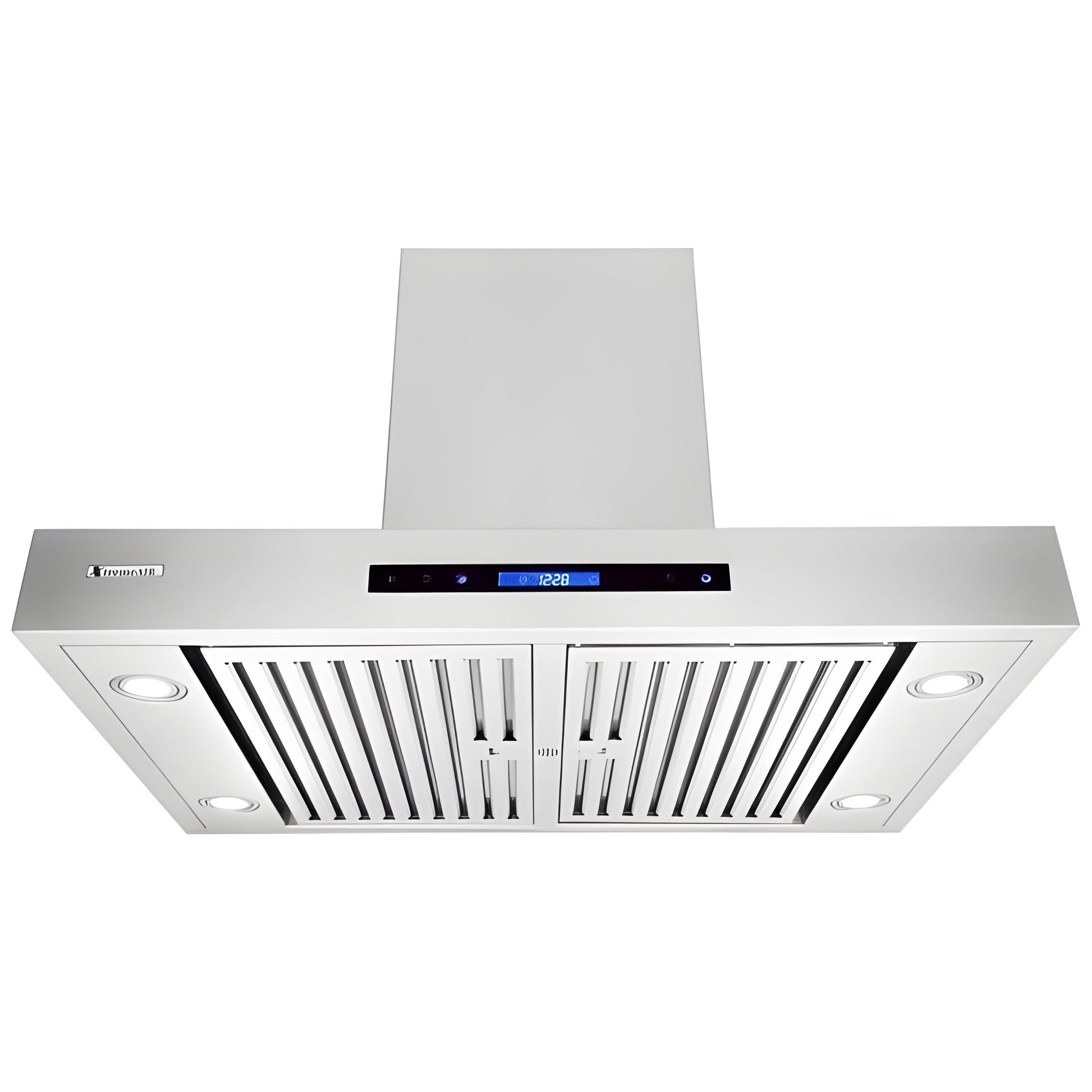 A: A 36-inch island mount range hood designed to efficiently remove smoke, odors, and grease, while adding a modern touch to your kitchen.