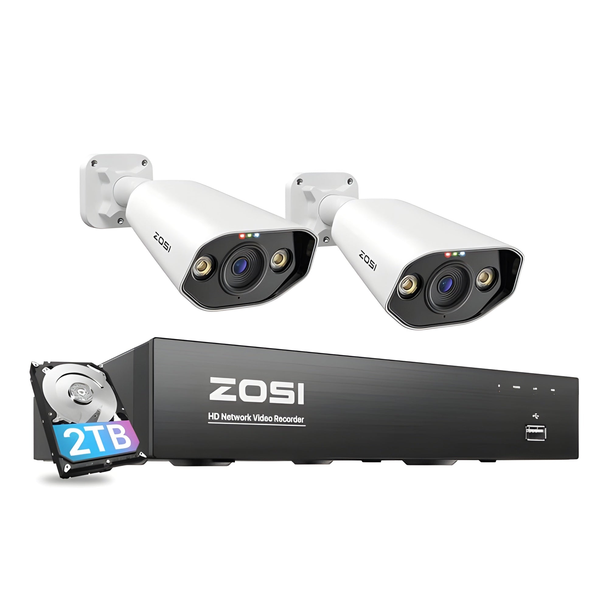 A: The Zosi C182 is a compact and reliable security system featuring 2 high-definition 4K PoE cameras and an 8-channel NVR with a 2TB hard drive for efficient video recording and storage.